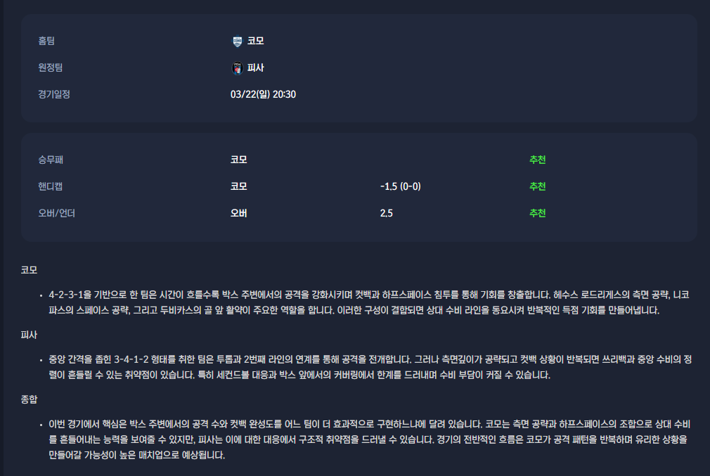 2026-03-22 [Serie A] 코모 VS 피사 분석