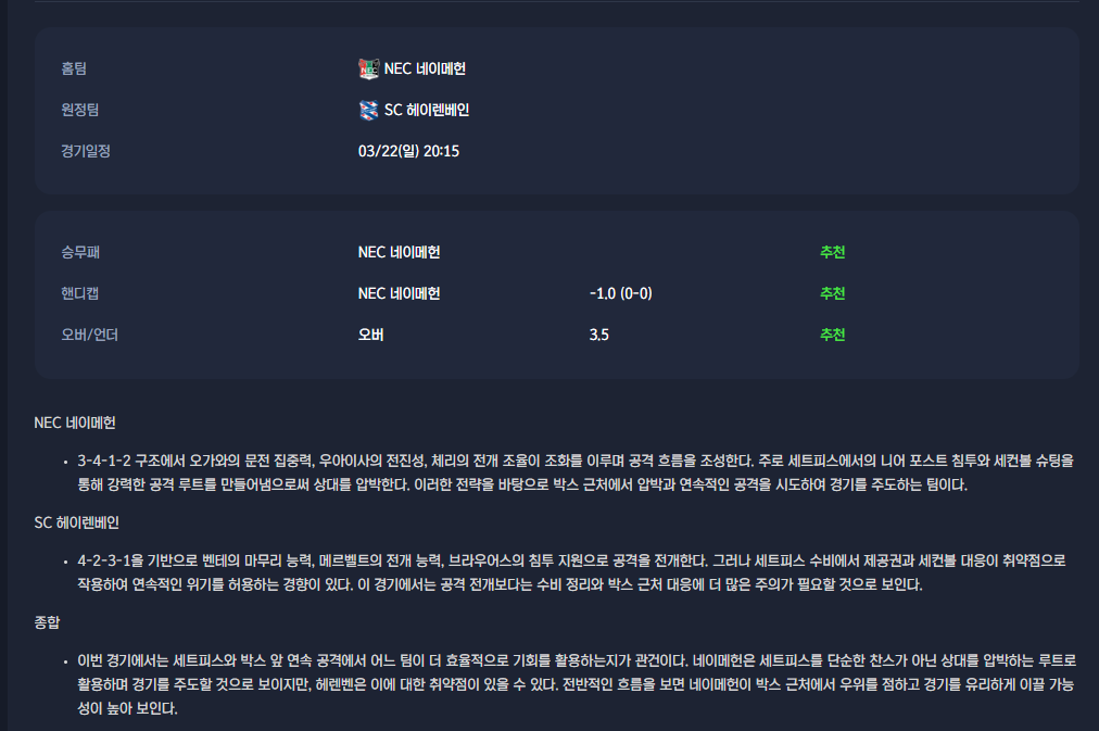2026-03-22 [Eredivisie] NEC 네이메헌 VS SC 헤이렌베인 분석
