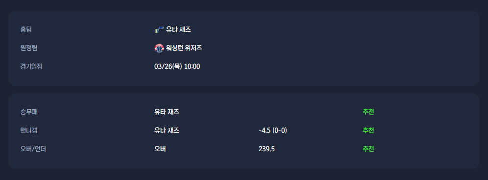 2026-03-26 유타 재즈 VS 워싱턴 위저즈 분석