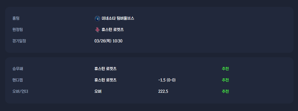 2026-03-26 미네소타 팀버울브스 VS 휴스턴 로켓츠 분석