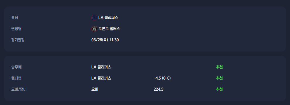 2026-03-26 LA 클리퍼스 VS 토론토 랩터스 분석