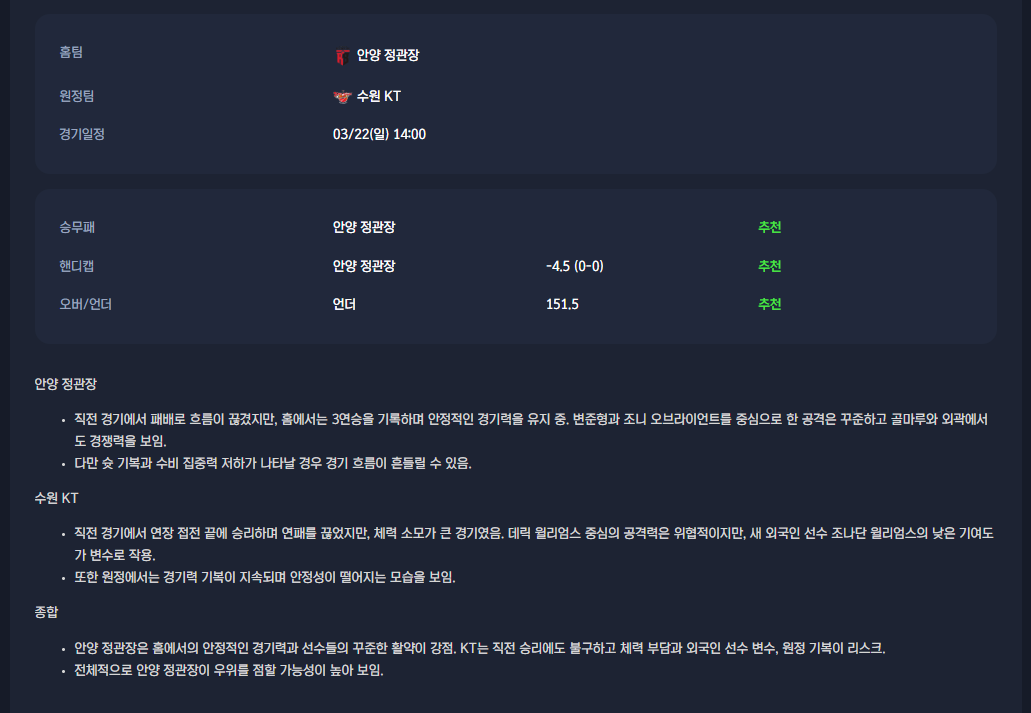 2026-03-22 [Korean Basketball League] 안양 정관장 VS 수원 KT 분석