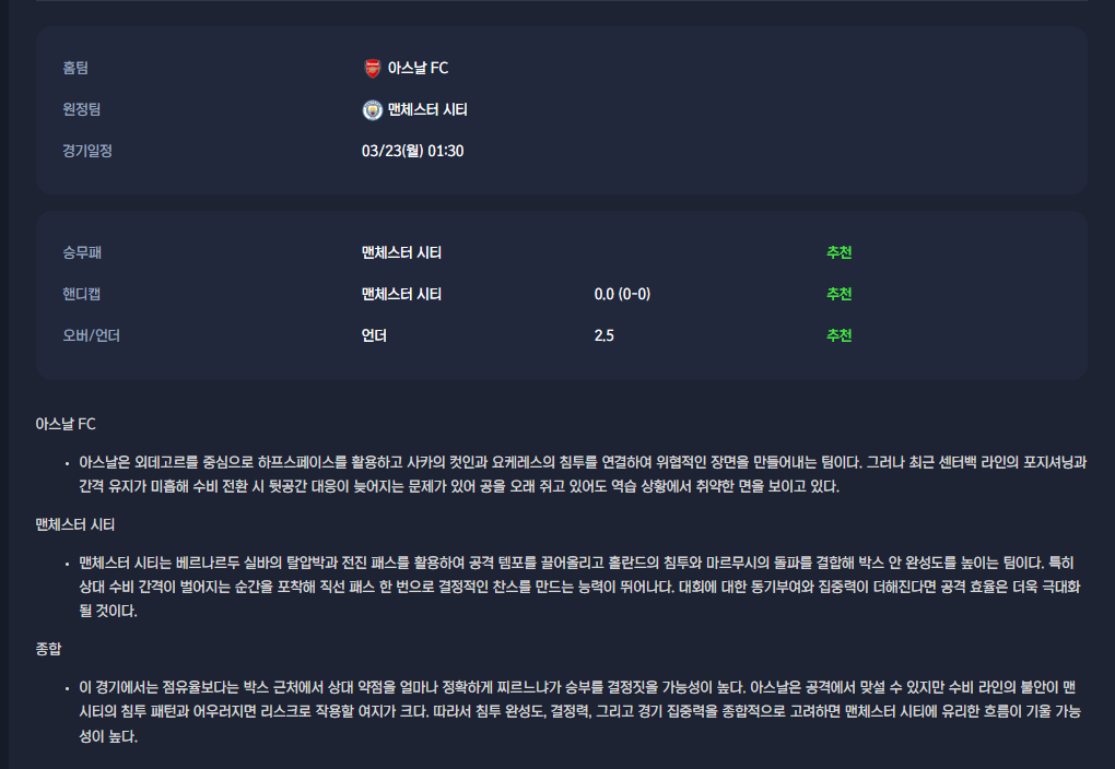 2026-03-23 [EFL Cup] 아스날 FC VS 맨체스터 시티 분석