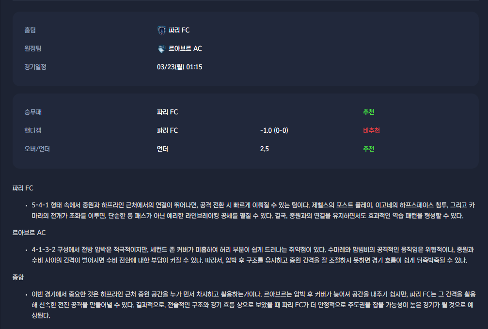 2026-03-23 [Ligue 1] 파리 FC VS 르아브르 AC 분석