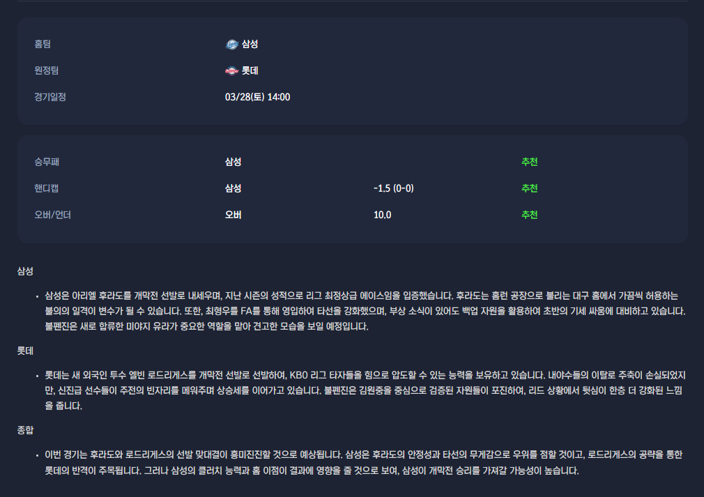 2026-03-28 [KBO] 삼성 VS 롯데 분석